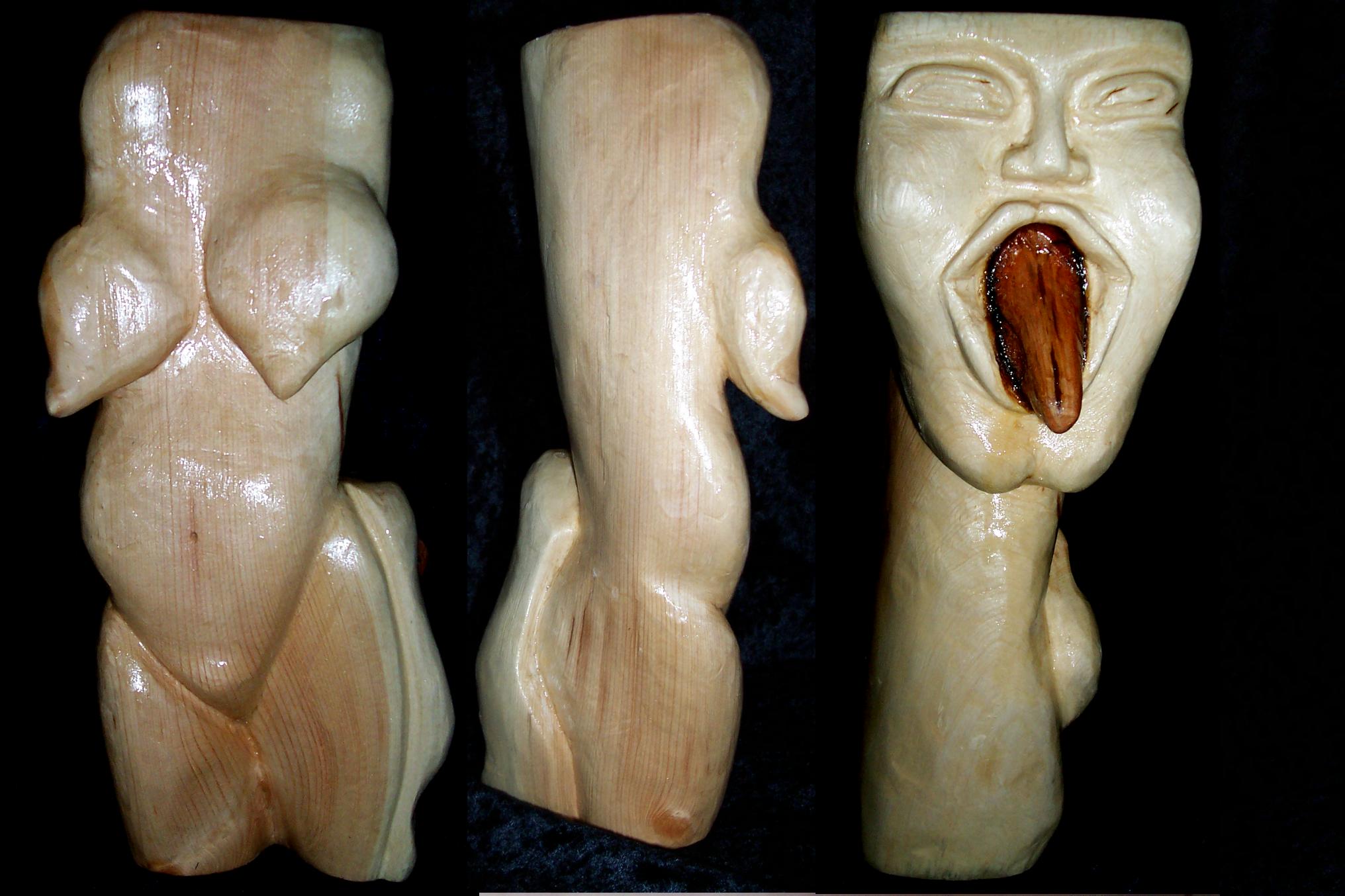 „Damentorso mit Maske“, Kieferholz, 30x14x14